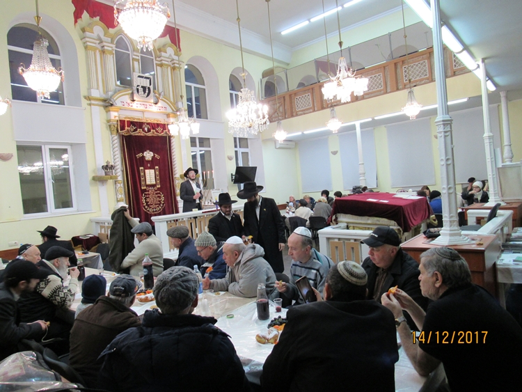 14 декабря 2017 (26 Кислев 5778) в синагоге прошел грандиозный праздник, посвященный Хануке. Посланники Рэбе, студенты йешивы Томхей Тмимим, приготовили для гостей специальную викторину. Было много песен, радости и веселья , и замечательные пончики.
