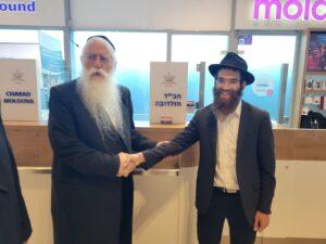 Министр по делам Иерусалима и традиций раввин Меира Поруш на фото вместе с Посланником Любавчиского Ребе раввином Леви Коэн в «Доме Хабада» в аэропорту Кишинева.